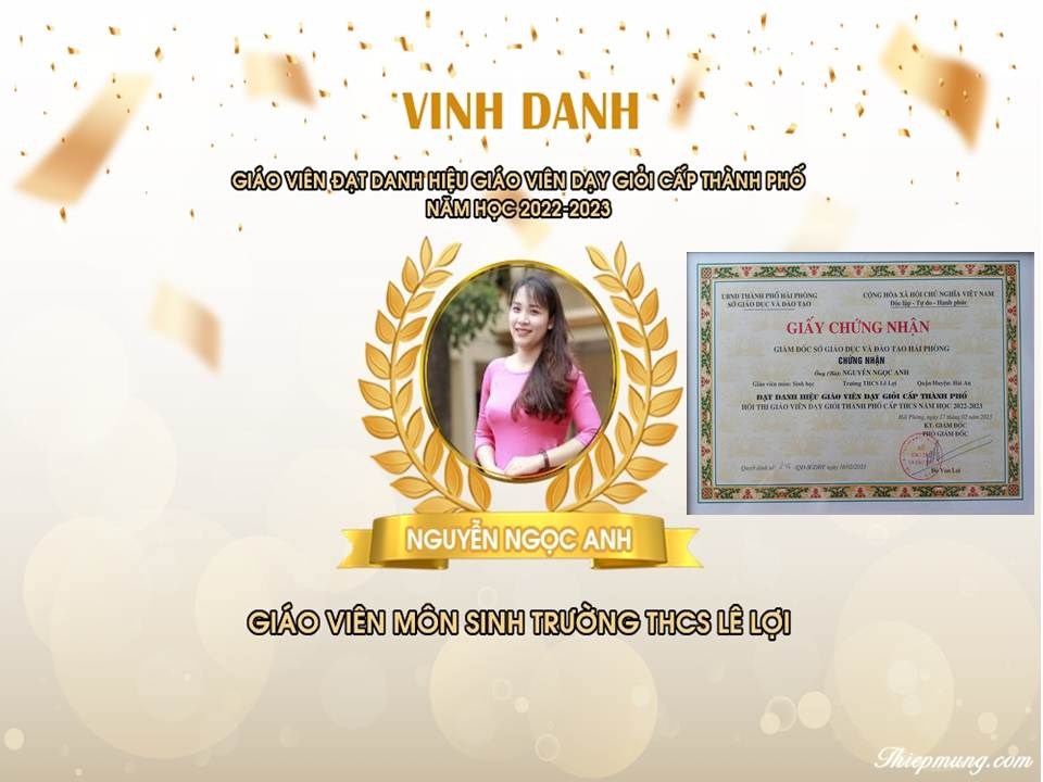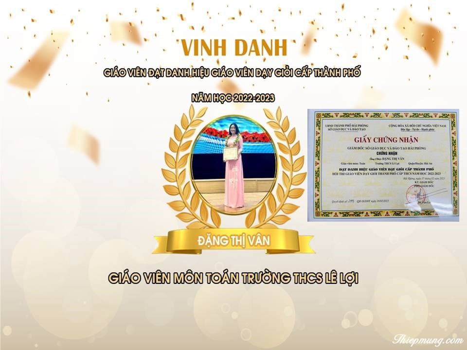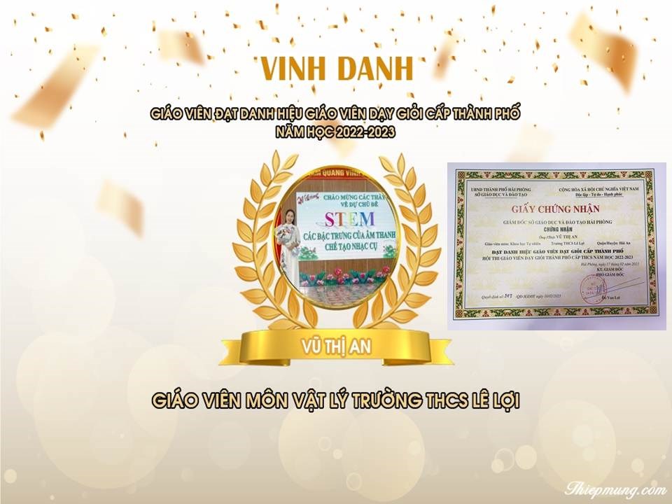 Ngày 17/02/2023, Sở Giáo dục và Đào tạo đã Tổng kết Hội thi giáo viên dạy giỏi Thành phố năm học 2022-2023. Trường THCS Lê Lợi có 7 đồng chí giáo viên tham gia và đều đạt danh hiệu giáo viên dạy giỏi cấp Thành phố năm học 2022-2023, trong đó có 3 đồng chí được vinh danh tại Hội nghị: