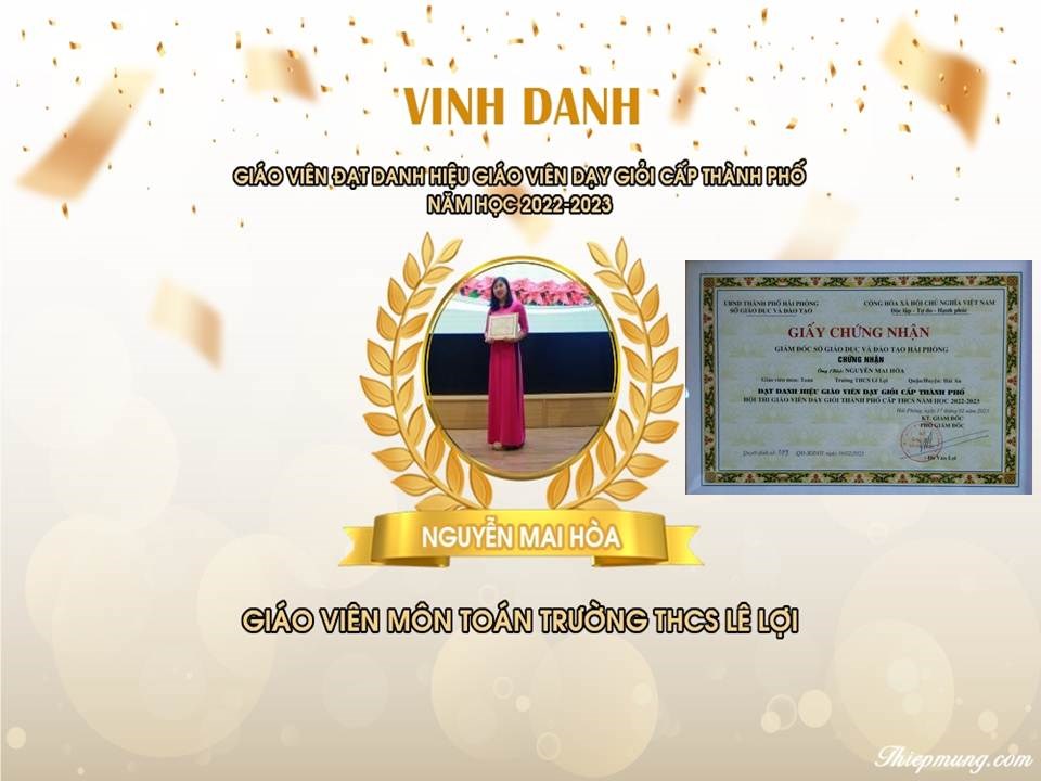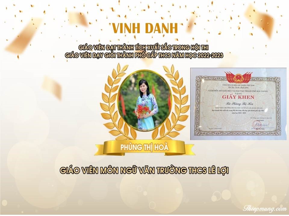 - Đồng chí Phùng Thị Hòa: Được vinh danh giáo viên đạt thành tích xuất sắc trong Hội thi giáo viên dạy giỏi Thành phố cấp THCS