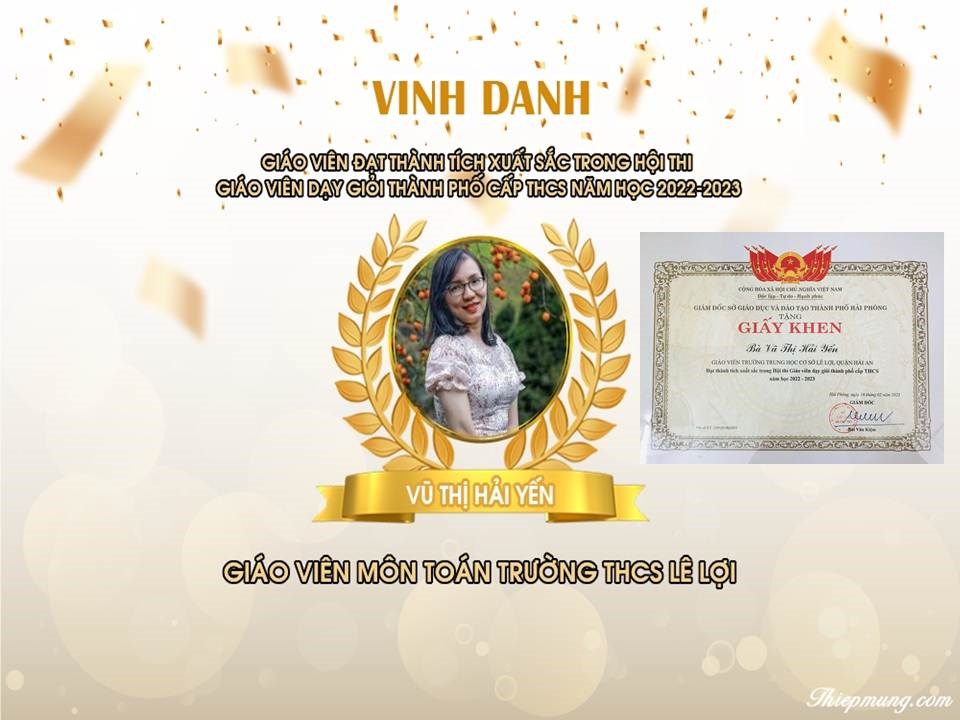 - Đồng chí Vũ Thị Hải Yến: Được vinh danh giáo viên đạt thành tích xuất sắc trong Hội thi giáo viên dạy giỏi Thành phố cấp THCS