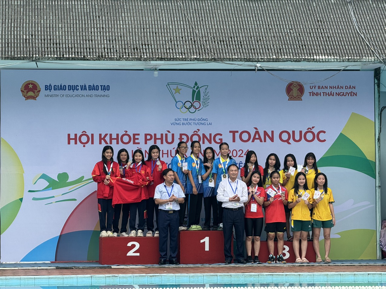 Học sinh Trường THCS Lê Lợi, Quận Hải An đạt huy chương bạc nội dung tiếp sức nữ bơi tự do tại Hội khỏe phù đổng toàn quốc lần thứ X năm 2024