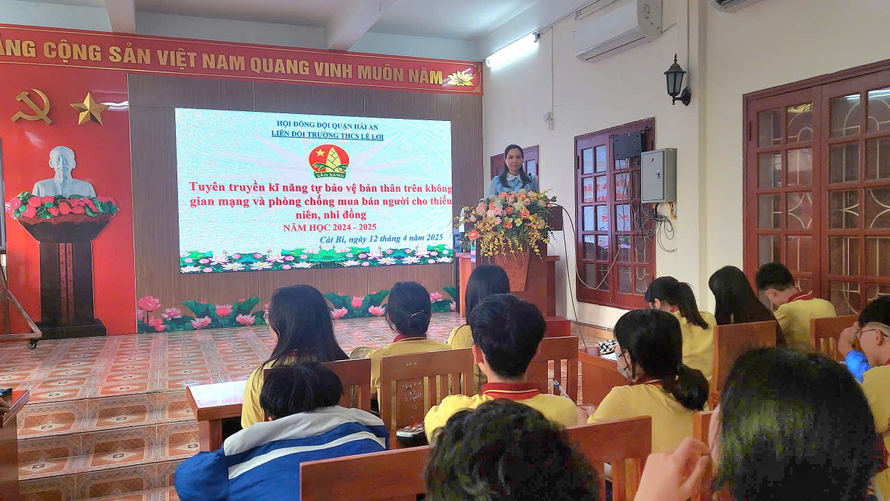 Ngày 12/4/2025 vừa qua, Liên đội THCS Lê Lợi đã tổ chức tuyên truyền kĩ năng tự bảo vệ bản thân trên không gian mạng và phòng chống mua bán người cho thiếu niên, nhi đồng. Buổi tuyên truyền có ý nghĩa thiết thực và giúp các em học tập thêm các kĩ năng phòng tránh và bảo vệ bản thân trước các nguy cơ của tội phạm lợi dụng trẻ em trên không gian mạng.