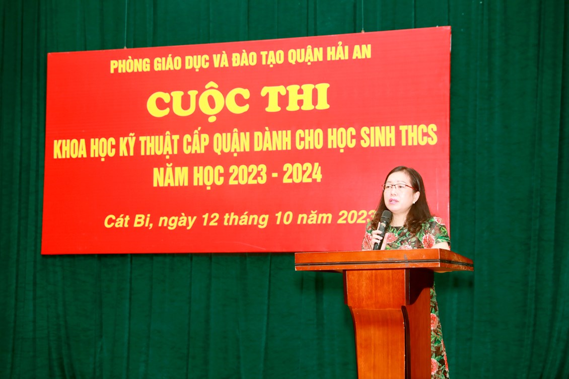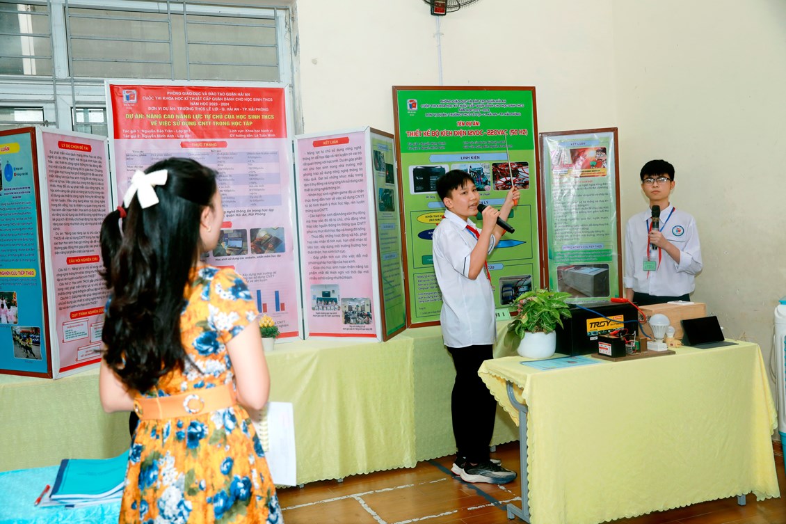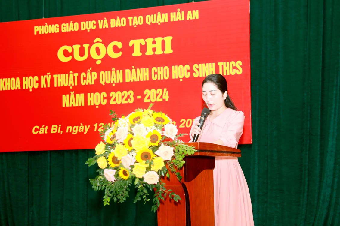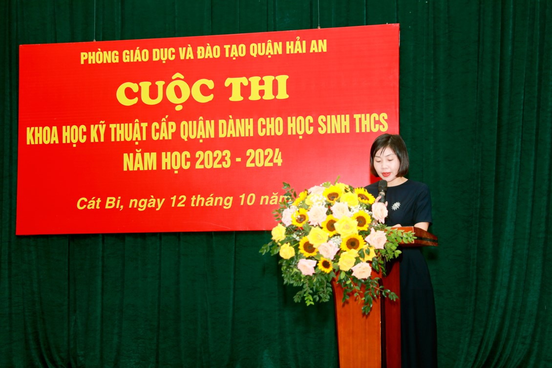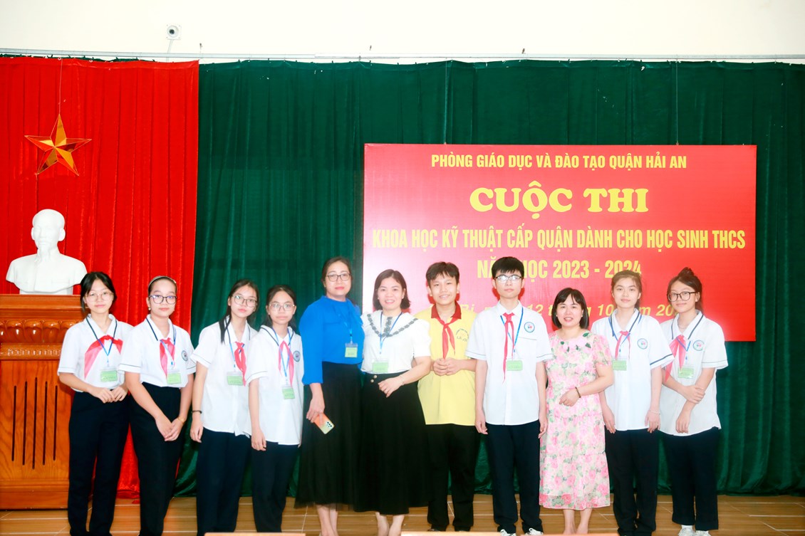 Thực hiện công văn số 223/PGDĐT-TrH ngày 12/9/2023 của Phòng GD&ĐT quận Hải An về việc hướng dẫn triển khai hoạt động nghiên cứu khoa học và tổ chức cuộc thi KHKT cấp quận dành cho học sinh trung học năm học 2023-2024. Ngày 12,13/10/2023, Phòng Giáo dục quận Hải An tổ chức cuộc thi KHKT cấp quận năm học 2023-2024 dành cho học sinh THCS được tổ chức tại trường THCS Lê Lợi.