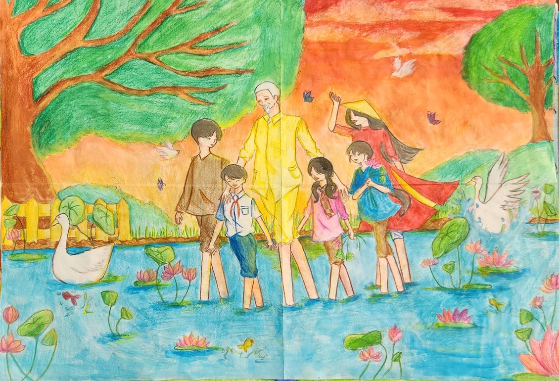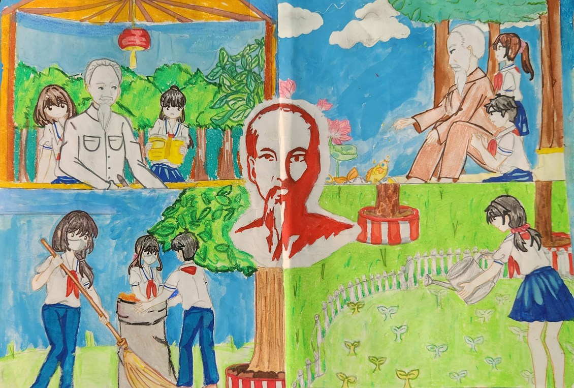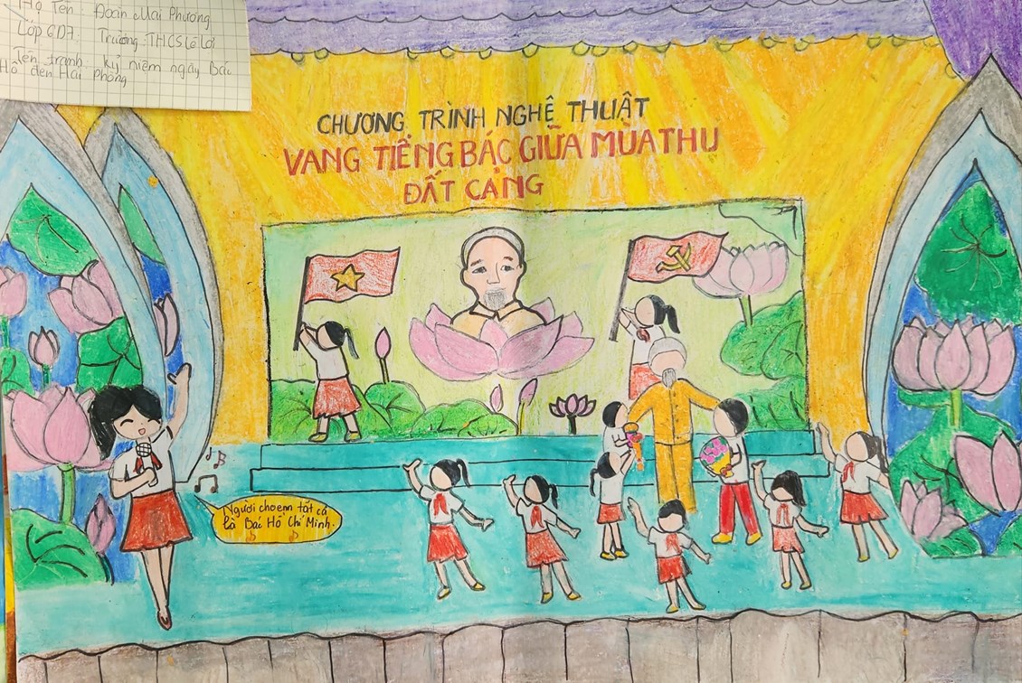 Học sinh trường THCS Lê Lợi tham gia cuộc thi vẽ tranh "Bác Hồ với thiếu nhi - Thiếu nhi với Bác Hồ"
