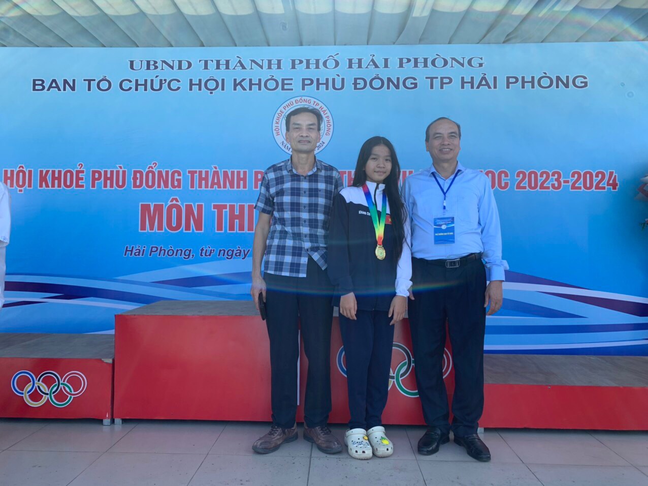- Học sinh Trần Khánh Chi - Lớp 7C1 đạt 01 huy chương vàng nội dung bơi ếch 50m, 1 huy chương bạc nội dung boi bướm 50 m