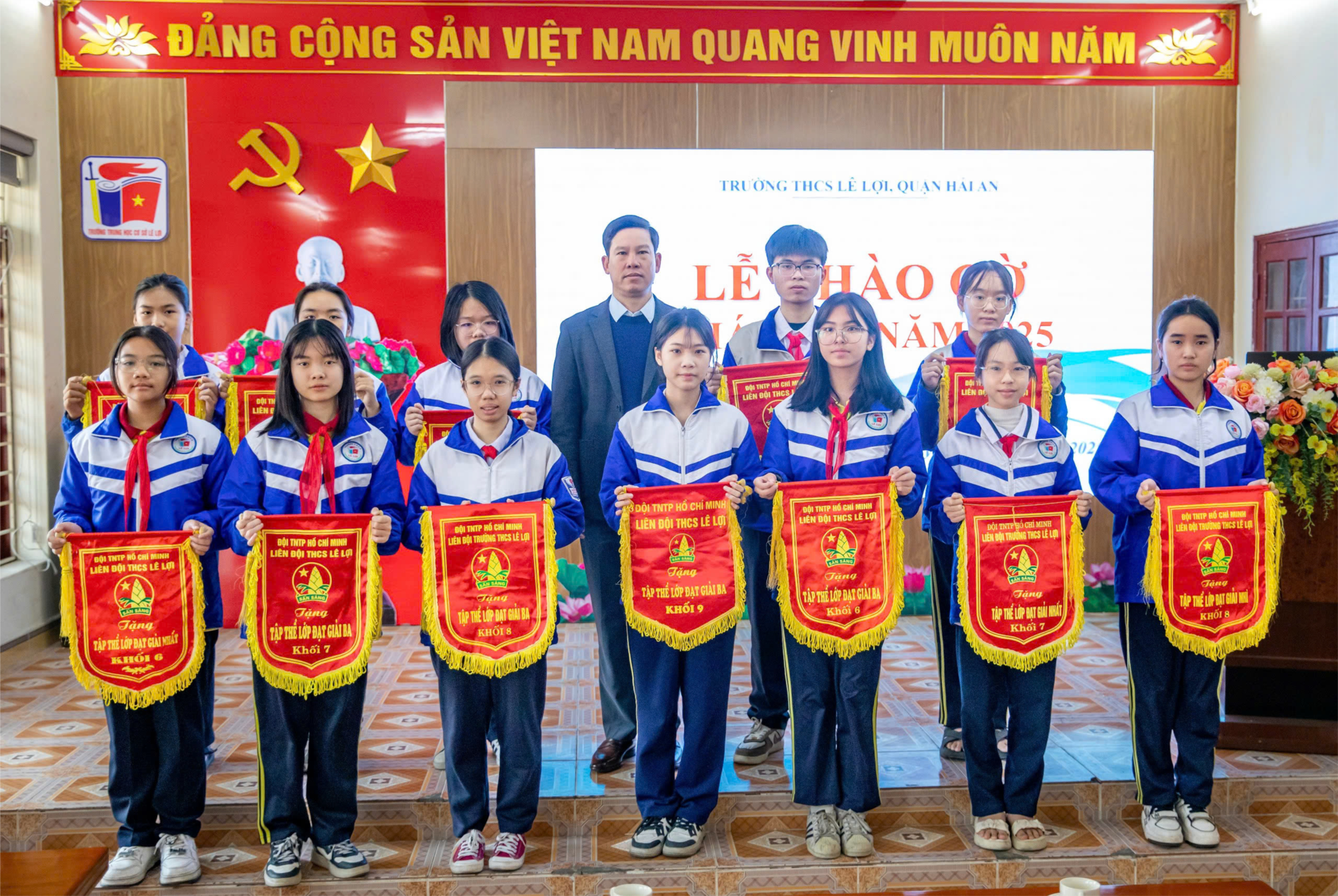 Ngày 04/01/2025, Trường THCS Lê Lợi tổ chức lễ chào cờ tháng 01. Tham dự buổi lễ có các thầy cô giáo trong Ban Giám hiệu Nhà trường, cô Tổng phụ trách, các thầy cô giáo, các em học sinh đại diện các lớp và các gương mặt học sinh tiêu biểu được khen thưởng, biểu dương.