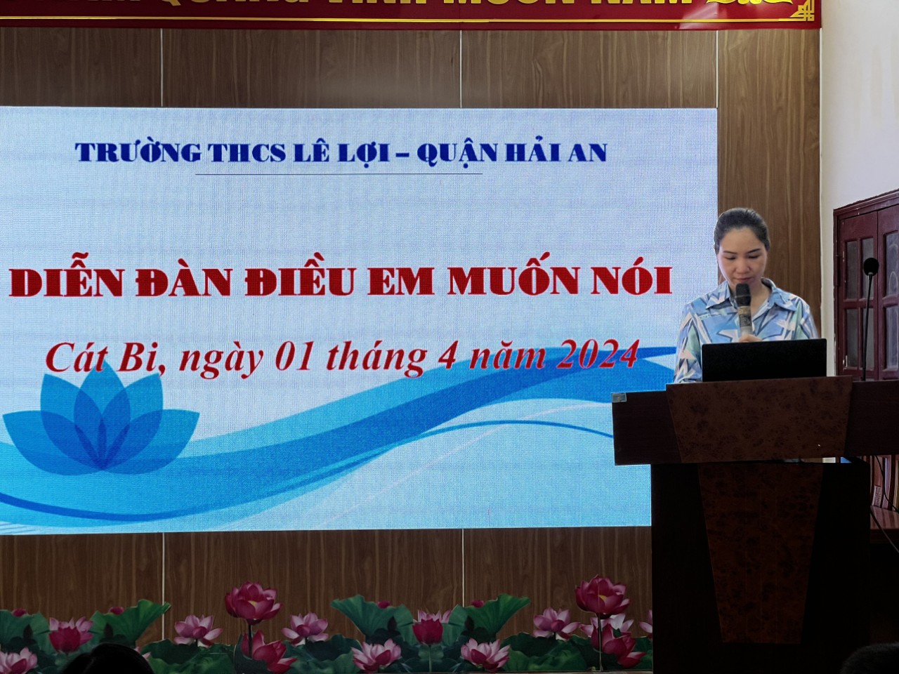 Thực hiện chương trình công tác đội và phong trào nhiếu nhi năm học 2023-2024, ngày 01/4/2024, Liên đội THCS Lê Lợi tổ chức Diễn đàn “Điều em muốn nói” với chủ đề: Phòng, chống bạo lực học đường!