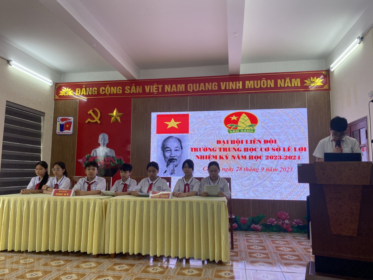 * Thực hiện chương trình liên ngành số 03/CT-LN ngày 06/9/2023 giữa Quận đoàn - Phòng Giáo dục và Đào tạo quận Hải An; thực hiện kế hoạch công tác Đội và phong trào thiếu nhi năm học 2023 - 2024; được sự đồng ý của Cấp ủy, Ban giám hiệu nhà trường, ngày 29/9/2023 liên đội trường THCS Lê Lợi vui mừng tổ chức Đại hội Liên đội nhiệm kỳ năm học 2023 – 2024.