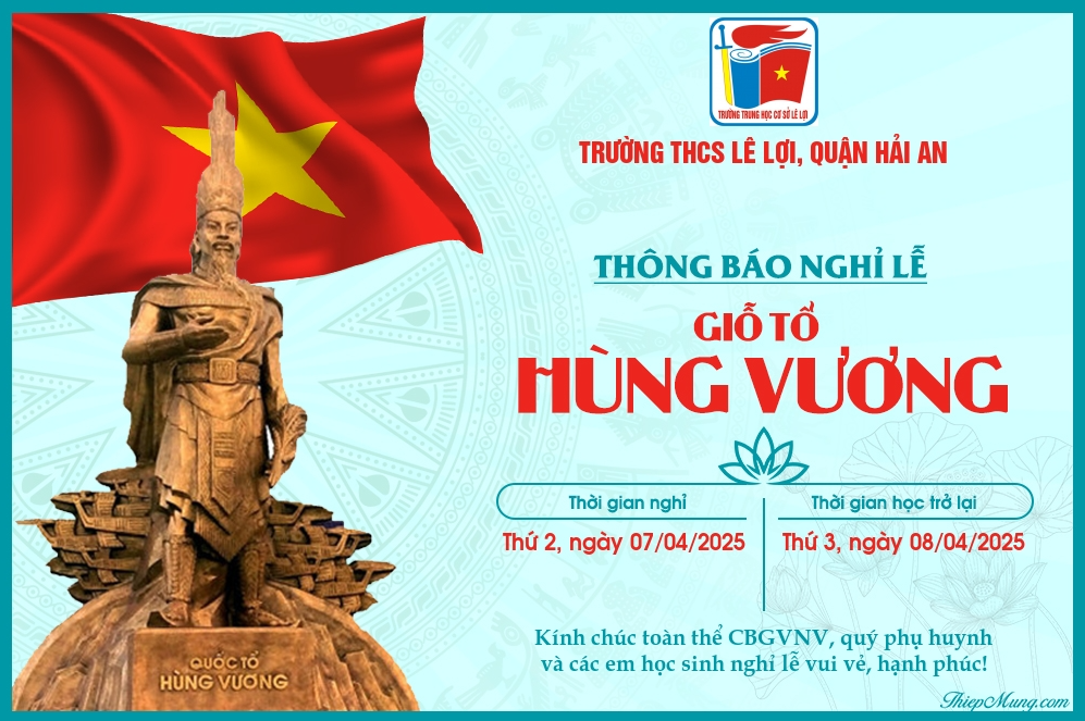 📣Trường THCS Lê Lợi xin trân trọng thông báo lịch nghỉ lễ Giỗ Tổ Hùng Vương (10/3 Âm lịch) như sau: