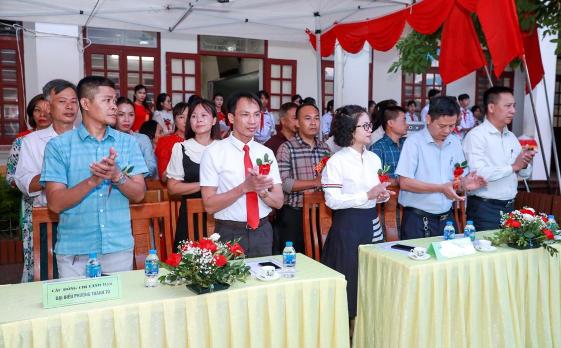 - Thầy giáo Lê Đức Vương- Bí thư chi bộ - Hiệu trưởng nhà trường cùng các thầy cô giáo là cán bộ, giáo viên, nhân viên trường THCS Lê Lợi, và các em học sinh đã về dự đông đủ.