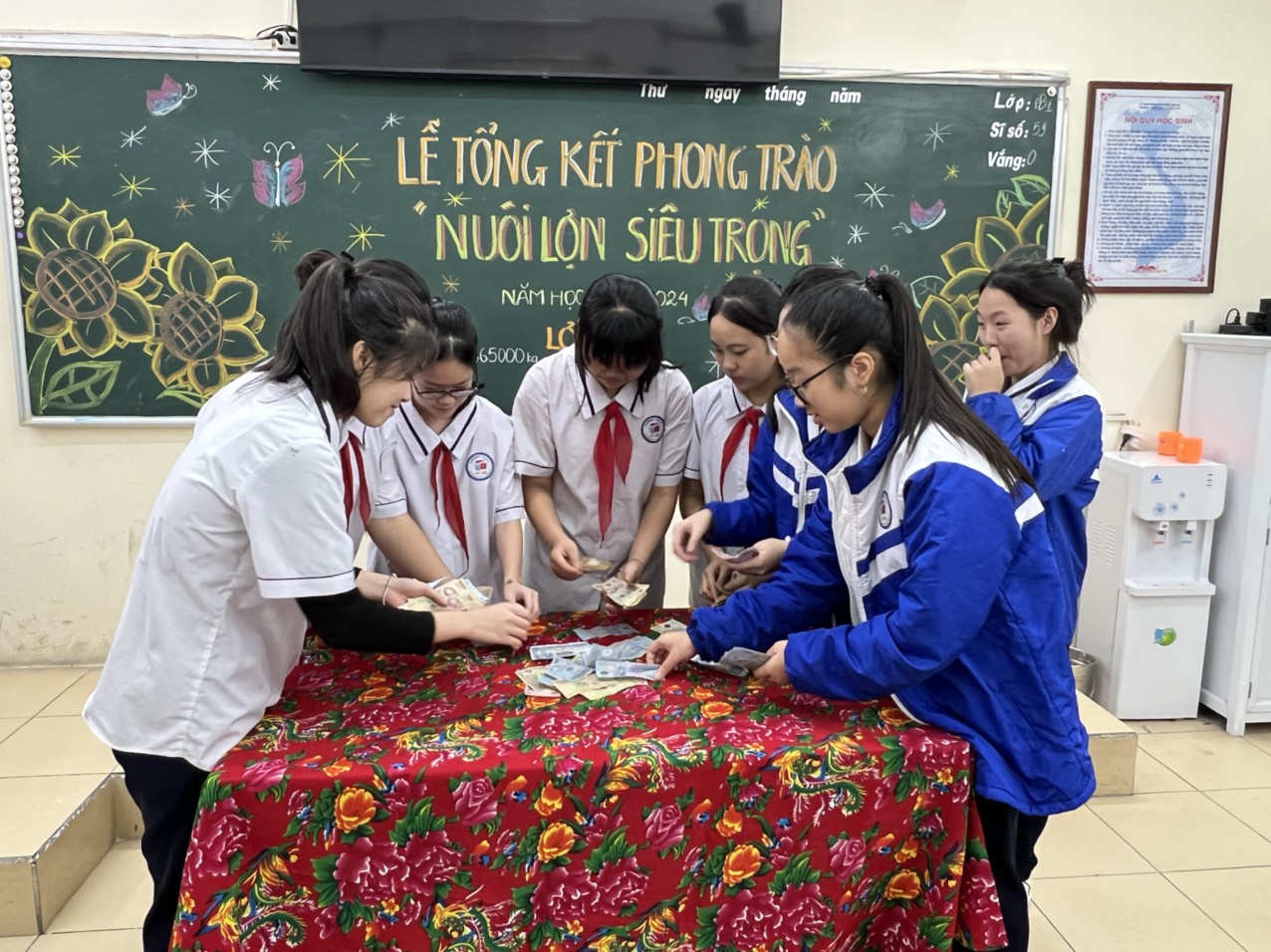 Trường THCS đã tổng hợp số tiền nuôi lợn và gửi đóng một phần về Hội Chữ thập đỏ Quận theo yêu cầu của công văn. Phần còn lại nhà trường sẽ thực hiện tặng quà cho học sinh có hoàn cảnh khó khăn của nhà trường.