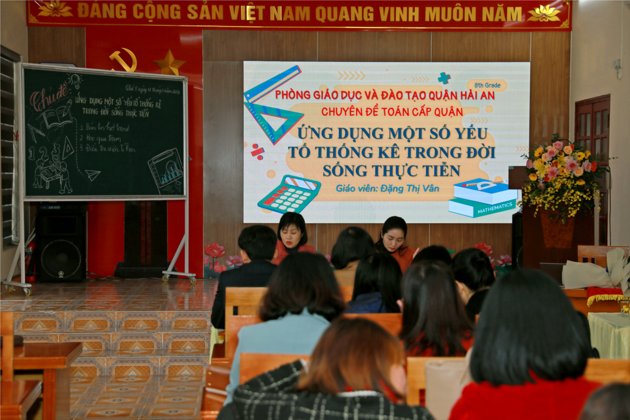 Nhằm định hướng đổi mới nội dung chương trình, phương pháp dạy học đáp ứng chương trình giáo dục phổ thông 2018. Ngày 11/01/2024, Trường THCS Lê Lợi tổ chức sinh hoạt chuyên môn cấp Quận môn Toán với chủ đề: Ứng dụng một số yếu tố thống kê trong đời sống thực tiễn do cô giáo Đặng Thị Vân giảng dạy.