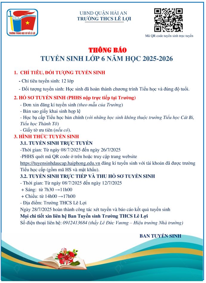 Thông báo tuyển sinh lớp 6 năm học 2025-2026