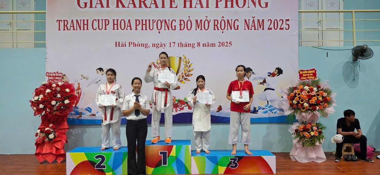 💐Và ngay sau khi tham gia Giải vô địch các câu lạc bộ Karate Quốc gia tại Đắc Lắc, em đã kịp quay về và ẵm 03 Huy chương trong đó: 01 Huy chương Vàng (kumite cá nhân 12-14 tuổi); 01 Huy chương Bạc (kumite đồng đội 12-14 tuổi); 01 Huy chương Đồng (kata đồng đội 12-14 tuổi) Giải Karate Hải Phòng Tranh cup Hoa Phượng Đỏ lần thứ nhất mở rộng năm 2025 tổ chức tại Hải Phòng