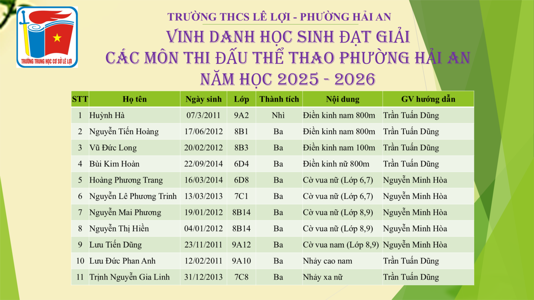 🏅Trường THCS Lê Lợi vinh danh 11 học sinh đạt giải trên.