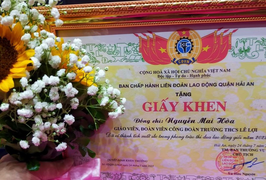 Tại Hội nghị, vinh dự có đồng chí Lê Thị Mỹ Hạnh-Phó Hiệu trưởng và đồng chí Nguyễn Mai Hòa-Giáo viên, Đoàn viên Công đoàn trường THCS Lê Lợi được UBND quận tặng giấy khen Công đoàn viên tiêu biểu trong lao động giỏi, lao động sáng tạo; học tập và làm theo tư tưởng, đạo đức, phong cách Hồ Chí Minh năm 2022.