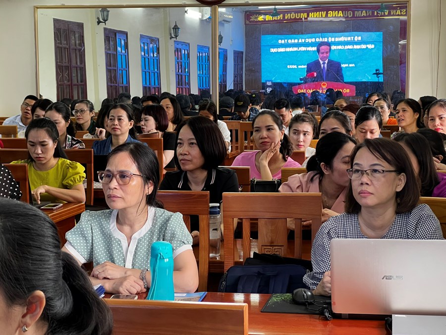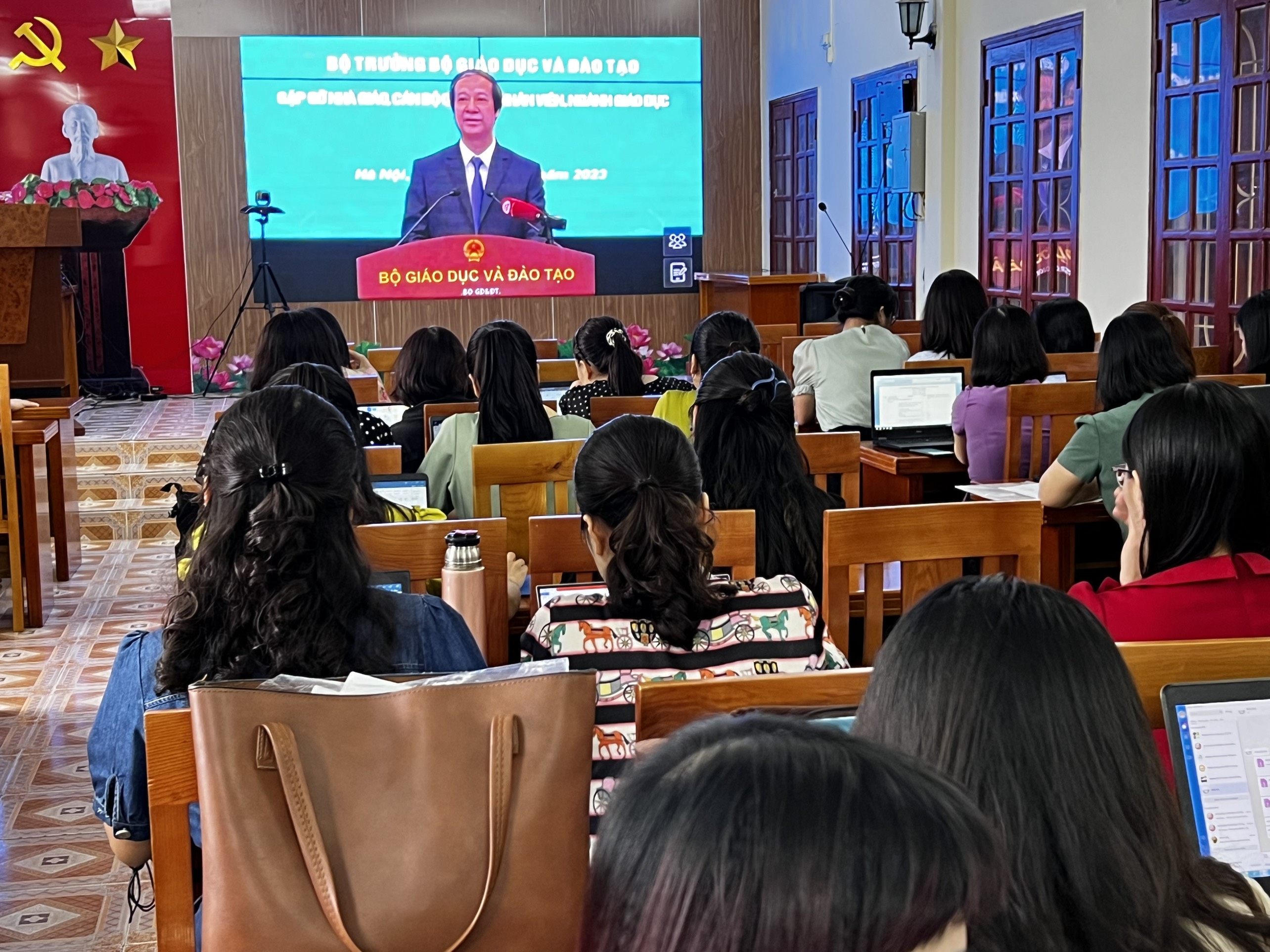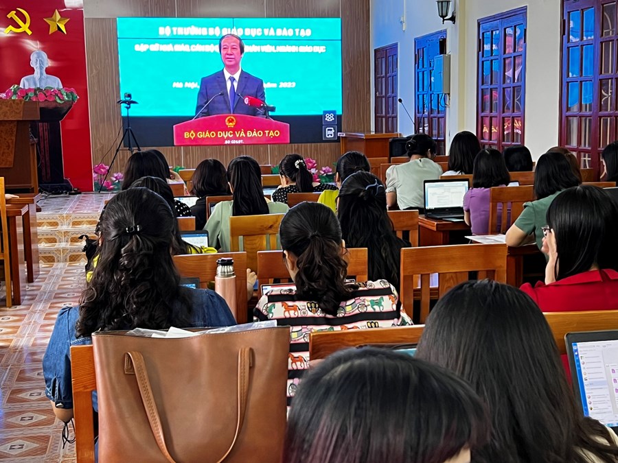 Thực hiện Văn bản số 3947/BGDĐT-NGCBQLGD, ngày 04/8/2023 của Bộ Giáo dục và Đào tạo, sáng 15/8/2023 trường THCS Lê Lợi, Quận Hải An Tham dự trực tuyến Chương trình "Bộ trưởng gặp gỡ nhà giáo, cán bộ quản lý, nhân viên ngành Giáo dục-Đào tạo năm 2023".