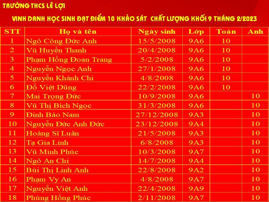 Vinh danh học sinh đạt Thủ khoa, Á khoa, Tam khoa, đạt điểm 10 khảo sát chất lượng khối 9 tháng 2/2023