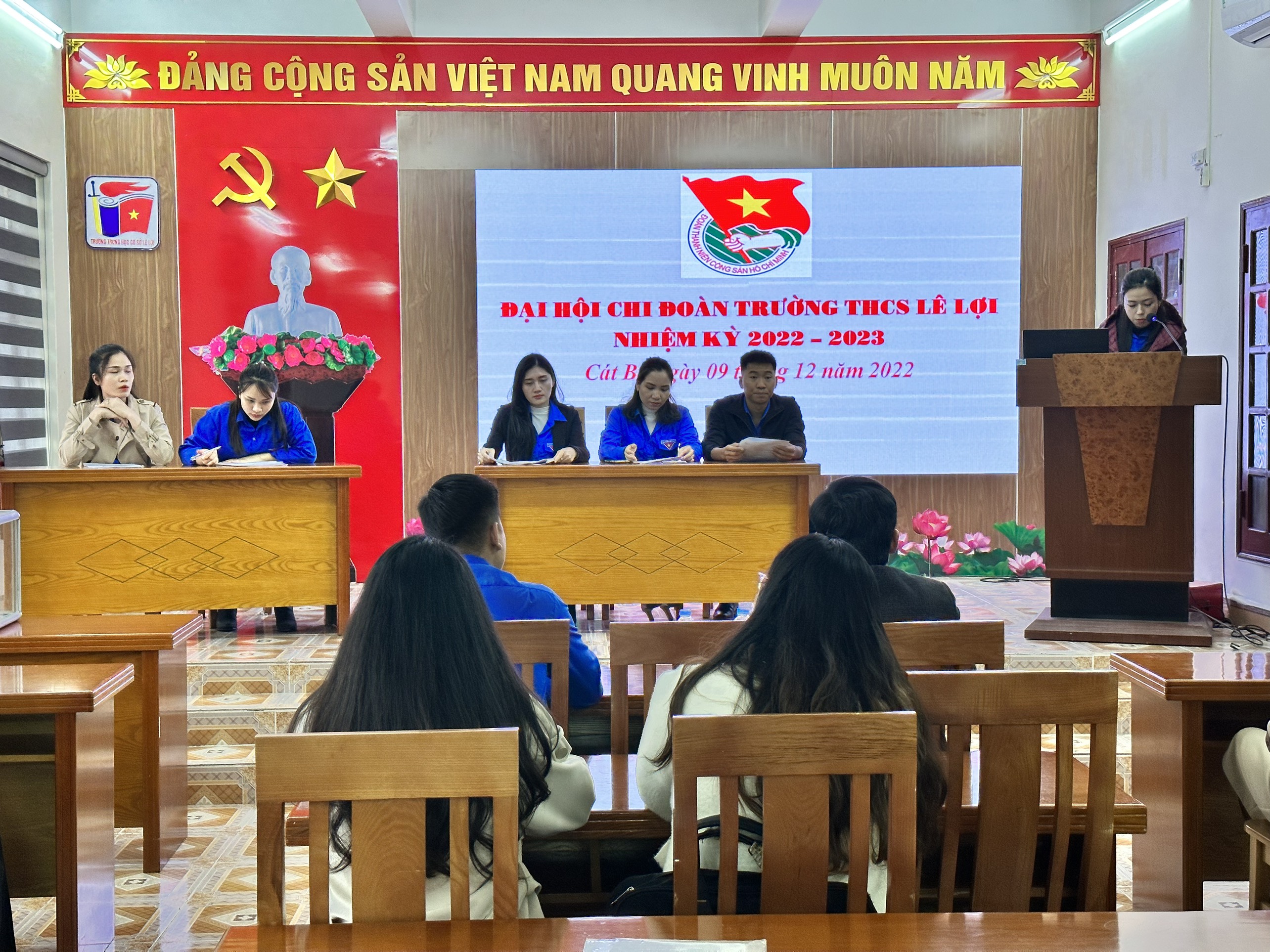 Được sự nhất trí của Ban chấp hành Đoàn phường Cát Bi, Chi bộ, Ban giám hiệu trường THCS Lê Lợi. Ngày 09/12/2022, Chi đoàn thanh niên nhà trường đã tổ chức Đại hội chi đoàn nhiệm kỳ 2022 - 2023.