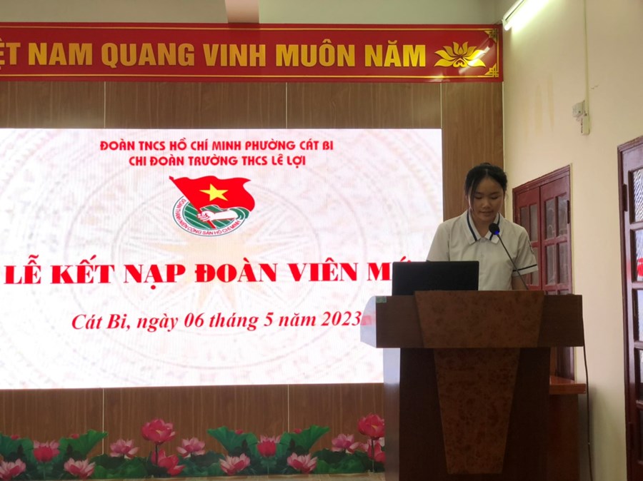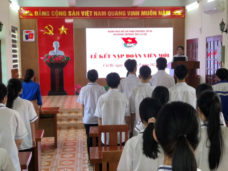 Sáng ngày 06/5/2023, BCH chi Đoàn trường THCS Lê Lợi đã tổ chức “Lễ kết nạp Đoàn viên mới đợt 2 cho 74 em học sinh ưu tú lớp 9.