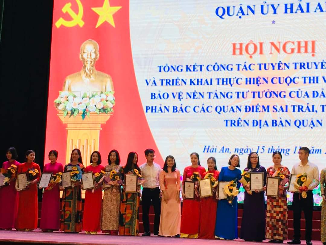 Thực hiện công văn số 80-KH/QU ngày 23/3/2022 của Quận uỷ Hải An về việc tuyên truyền, phát động, hưởng ứng và triển khai cuộc thi viết chính luận về bảo vệ nền tảng tư tưởng của Đảng, đấu tranh phản bác các quan điểm sai trái, thù địch năm 2022 trên địa bàn Quận Hải An. Trường THCS Lê Lợi đã có 2 đồng chí Lê Thị Dương và đồng chí Dương Thị Cẩm Doan tham gia cuộc thi. Trong đó có cô giáo Lê Thị Dương được biểu dương tại Hội nghị tổng kết cuộc thi viết chính luận năm 2022 trên địa bàn Quận