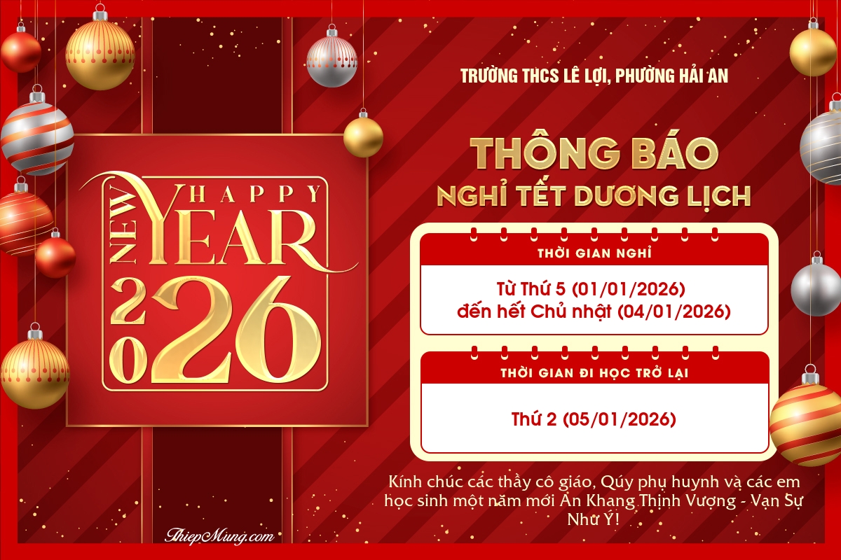 Trường THCS Lê Lợi Thông báo lịch nghỉ Tết Dương lịch năm 2026