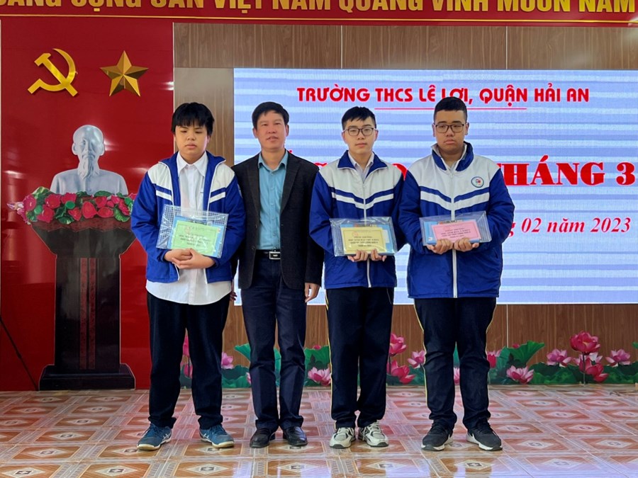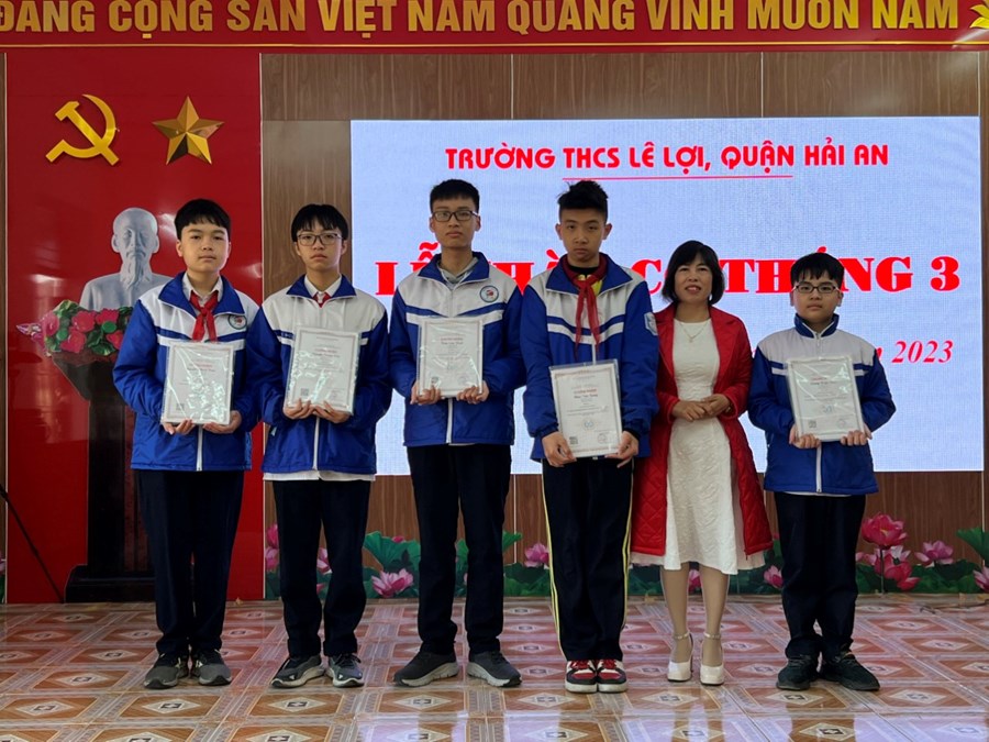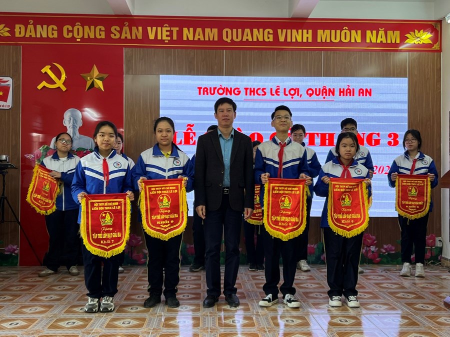 Ngày 27/02/2023, trường THCS Lê Lợi đã tiến hành chào cờ đầu tháng nhằm tổng kết các hoạt động công tác Đội trong tháng 1,2/2022 và triển khai kế hoạch công tác Đội tháng 3/2023. Tặng cờ luân lưu cho các tập thể xuất sắc đạt giải Nhất, Nhì, Ba của khối trong tháng 1,2. Khen thưởng các em học sinh: