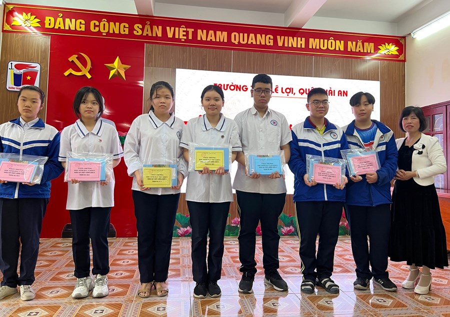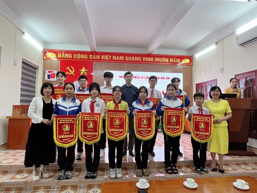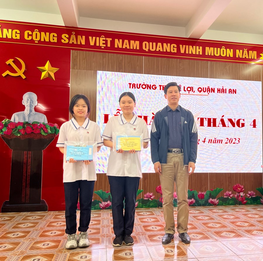 Trong buổi lễ chào cơ, nhà trường đã tặng cờ luân lưu cho các tập thể xuất sắc đạt giải Nhất, Nhì, Ba của khối trong tháng 3. Khen thưởng các em học sinh: