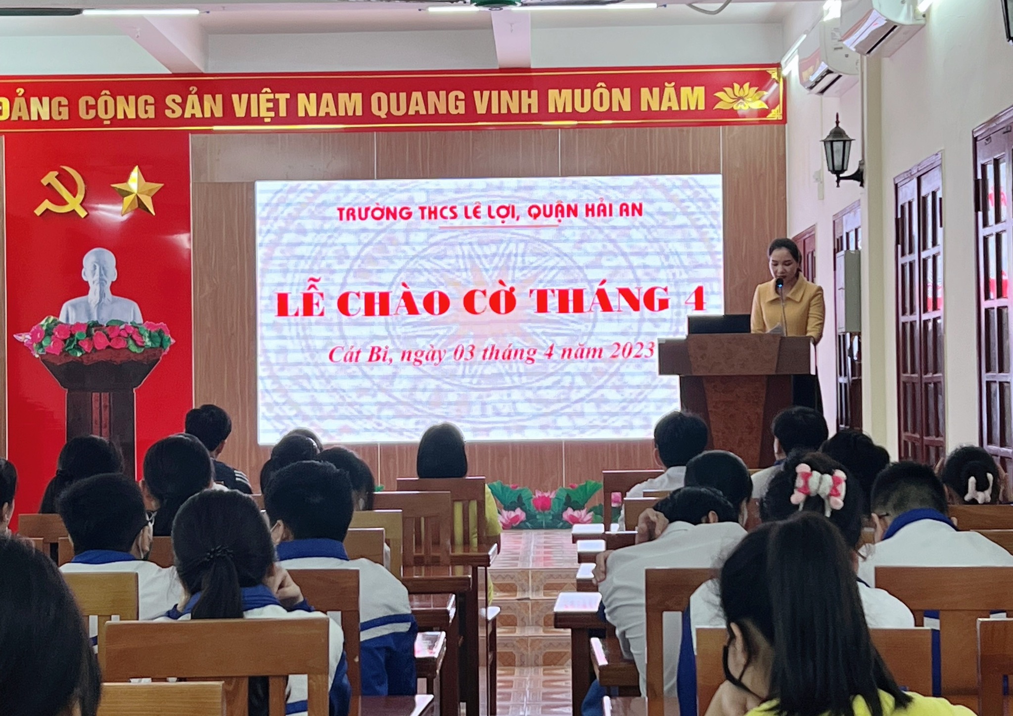 Ngày 03/4/2023, trường THCS Lê Lợi đã tiến hành chào cờ đầu tháng nhằm tổng kết các hoạt động công tác Đội trong tháng 3 và triển khai kế hoạch công tác Đội tháng 4/2023.