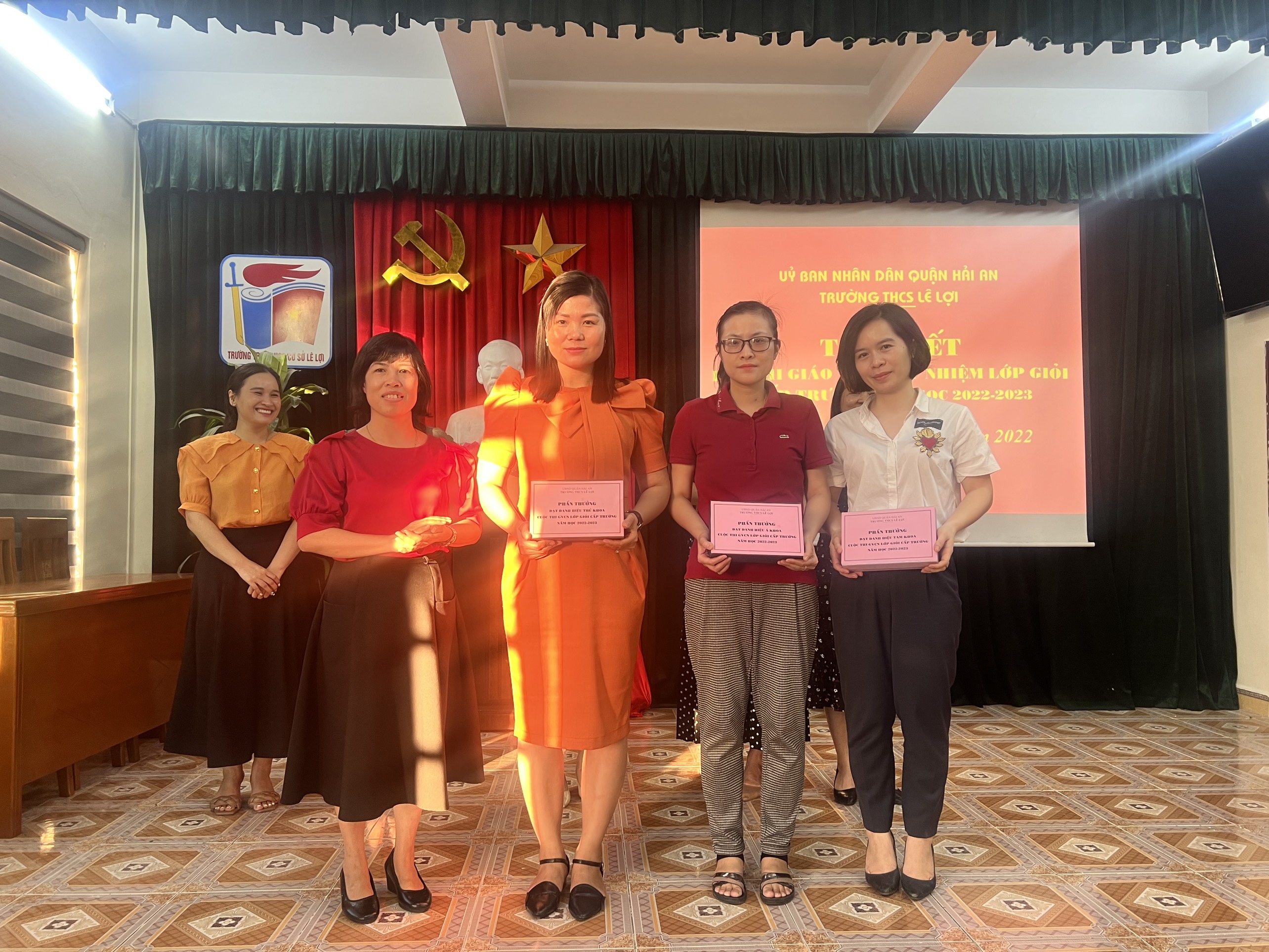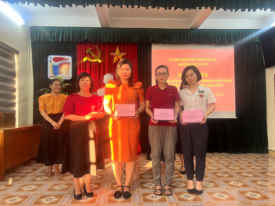 Ngày 3/10/2022, Trường THCS Lê Lợi đã Tổng kết Hội thi giáo viên chủ nhiệm lớp giỏi cấp trường năm học 2022-2023, nhà trường đã trao thưởng cho cô Phùng Thị Hoà – đạt thủ khoa, cô Đỗ Thị Phương Thanh – đạt Á Khoa, cô Lê Thị Thu – đạt Tam khoa và tôn vinh các thầy cô giáo đạt danh hiệu giáo viên chủ nhiệm lớp giỏi trong nhà trường. Chúc mừng các đồng chí!